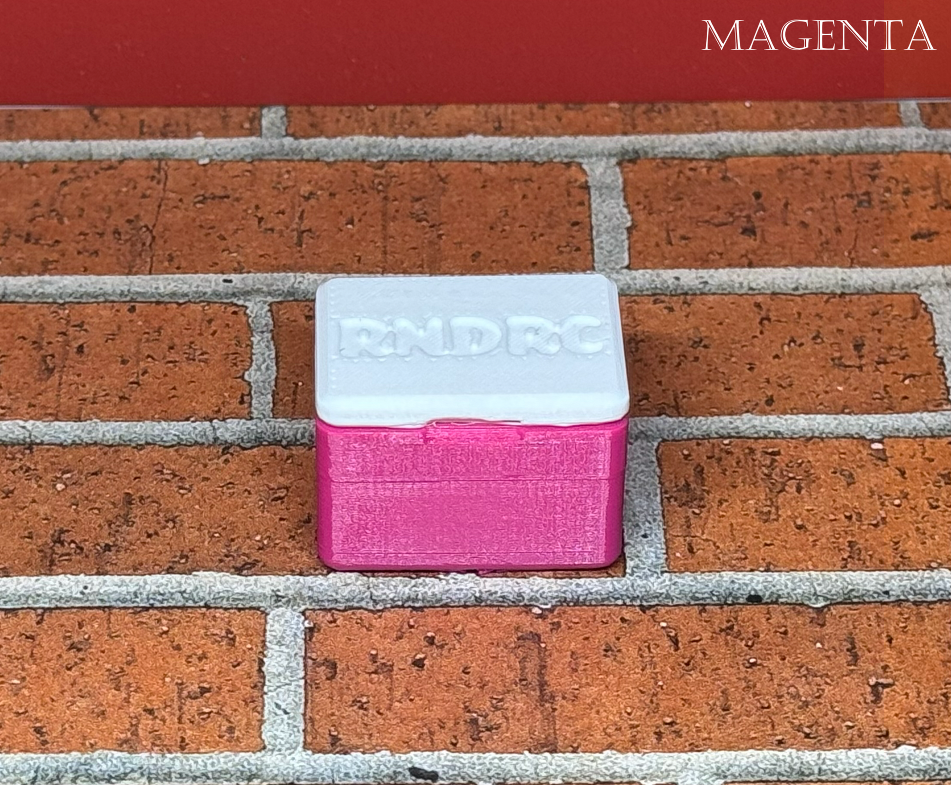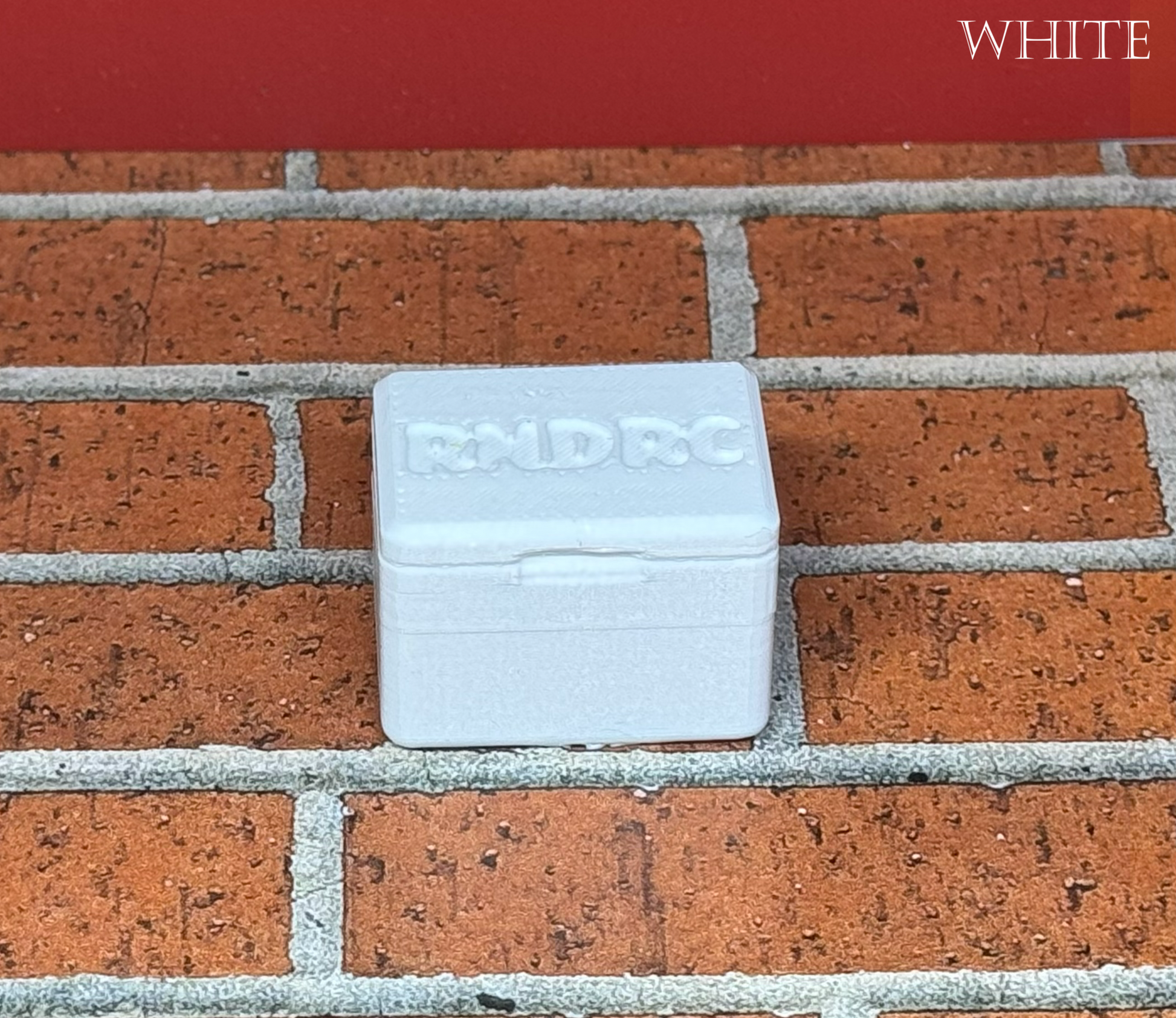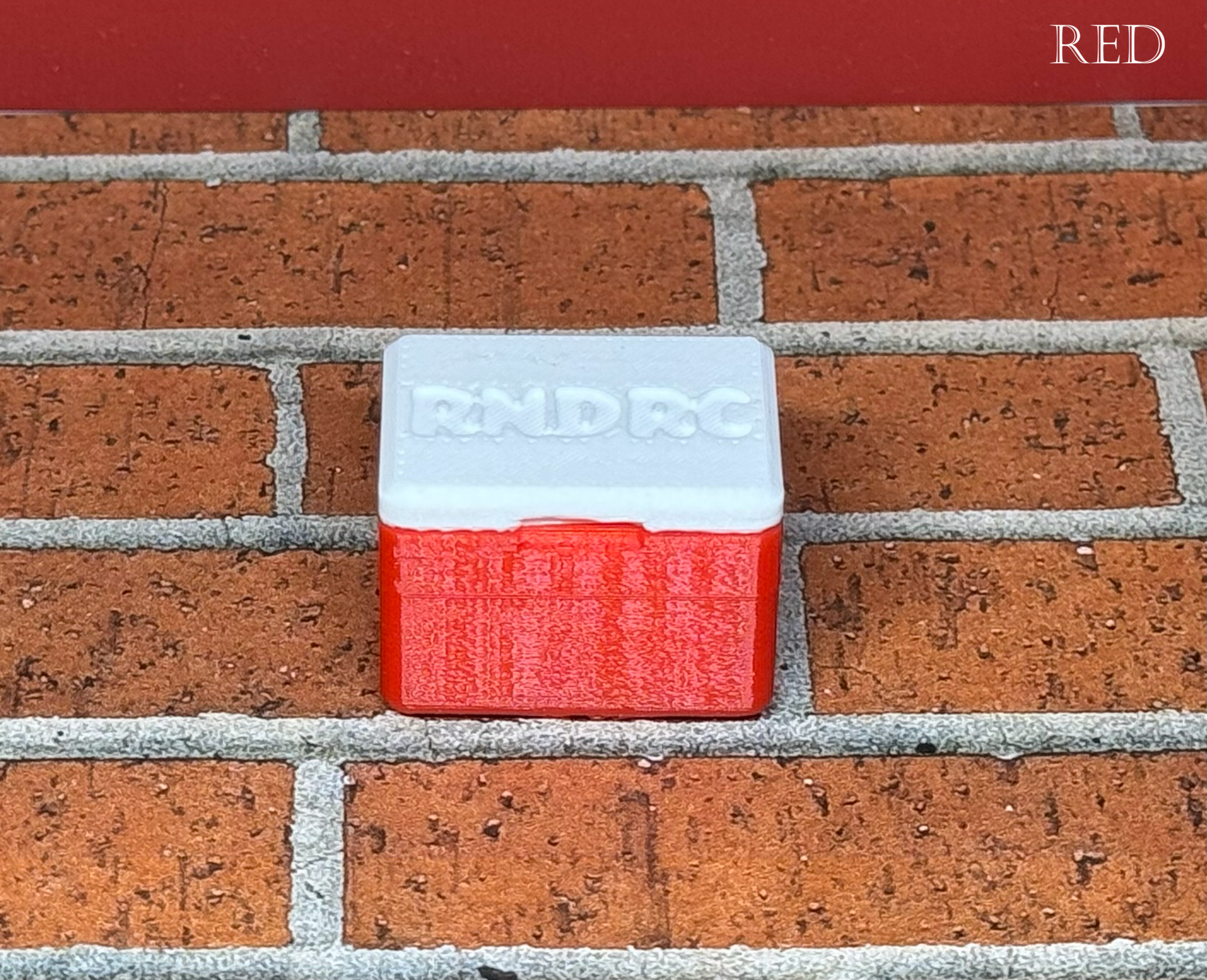 The RNDRC cooler will attach to the comp mounts or can be glued on anywhere you like. They come in 17 different colors with a white lid with the RNDRC logo on it.